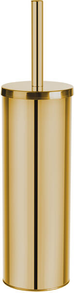 Laveo Miri, álló WC kefe, arany fényes, LAV-ALM_G50S állványkefe fedéllel, hogy az edény belsejét lefedje magassága: 38 cm szélesség: 9,7 cm anyaga: acél, műanyag fekete kefefej szín: arany fényes