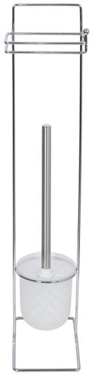 Fali wc kefe tartó üveg króm színben Mérete: magasság 40 cm x szélesség 15 cmAnyaga: rozsdamentes acél, horgany-króm ötvözet tartóivitel: krómFelhasználási terület: szaniter helyiségek. Tartós anyag, könnyen tisztítható és karbantartható. Kellemes esztétikus kialakítást biztosít. Egyszerű telepítés. Ideális bármilyen típusú fürdőszobába. A termék tartalmazza