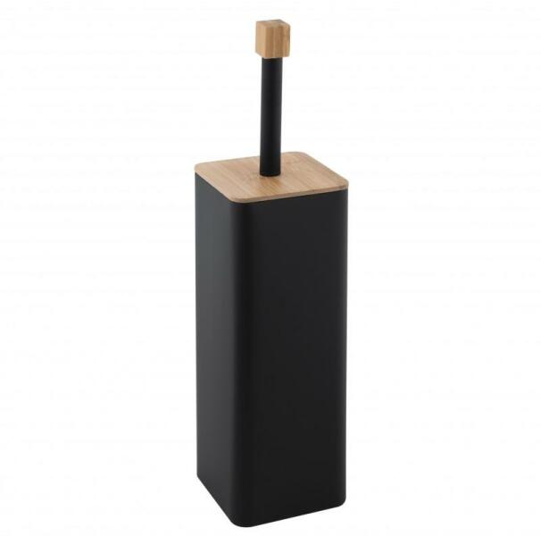 Erga Amba, négyszögletes WC kefe állóra, fekete matt-natúr barna, ERG-YKA-PD. AMBA-BLK Leírás: A WC kefe kiváló minőségű fekete lakkozott acélból készült, természetes bambuszfa elemekkel. A tartály belsejében egy levehető műanyag burkolat található a víz csepegtetéséhez, így a benne lévő kefetartály száraz és tiszta. Főbb jellemzői ✔ Elegáns fekete színű / ba