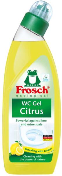 Termék információkTermékjellemzők:Hatékony an távolítja el a szennyeződéseket, vízkő- és vizelet lerakódásokat a WC felületéről - még a perem alatt is. Természetes citromsav tartalmával a legmakacsabb szennyeződéseket és a kellemetlen szagokat is könnyedén megszünteti. Ragyogóan tiszta felületet, friss citrom illatot biztosít. Márka:FroschSzabványosított márka:Fro