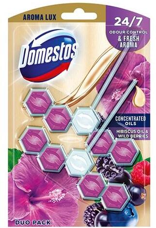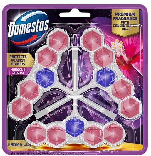 A Domestos 3 az 1-ben merev WC-blokkok három speciális rétegből állnak, és így három hatást egyesítenek. Megszüntetik a környezetet a baktériumok szaporodásához. Megakadályozza a vízkő kialakulását. Az illatosított gélcsík tartalmának köszönhetően minden öblítés után hosszan tartó friss illatot hagynak maguk után. Ezenkívül a Domestos tömör tömbök intenzíveb