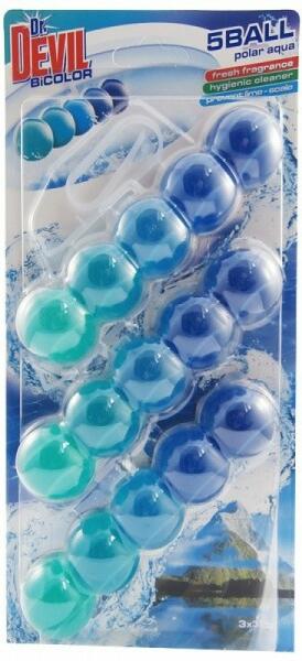 Dr. A Devil Wc BiColor 5Ball illatosít, tisztít és megelőző hatású a vízkő ellen. Dr. A Devil Wc BiColor 5Ball egy függő WC-blokk, amely minden típusú és formájú vécé számára alkalmas, a vécéblokk gazdagon habzik, friss és intenzív illatú, hatékonyan tisztít és megelőzően hat a vízkő ellen. Használat: Tépje le a teljes védőfóliát, és akassza fel a WC-csészé