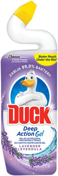 Duck levendulás WC tisztító 750ml Hivatalos magyarországi forgalmazótól. Leírás: A különleges, ívelt nyaknak köszönhetően, amellyel a perem alatti rész is könnyedén elérhető, a Duck® folyékony tisztítószer higiénikus tisztaságot és friss illatot biztosít a toalettben.