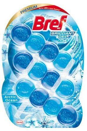 Innováció a Breftől! Az új Bref Brilliant Gél a WC frissítők új generációja. Az első gél állagú WC blokk a Brefre jellemző 4 labdás megjelenéssel. Gél állagának köszönhetően gyorsan oldódik és frissességgel árasztja el a toalettet. Akár +20%-kal több öblítés a Bref Power Aktiv-hoz viszonyítva (WC típustól függően). Prémium megjelenés és hosszan tartó, friss