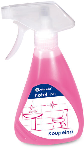 A Merida Hotel Line kiváló tisztítóelem a fürdőszobák és WC-k tisztításához. Ezzel a termékkel mosdókat, zuhanyfülkéket, kádakat és fürdőszobai szerelvényeket is tisztíthat. A termék nemcsak megbízhatóan tisztítja ezeket a fürdőszobai elemeket, hanem eltávolítja őket a vízkőtől és megadja a szükséges fényt, hanem a fürdőszoba terét is kellemes illatú. A Mer