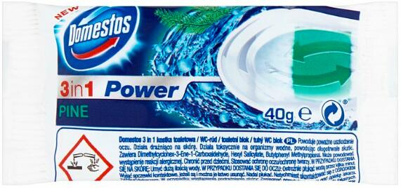 A Domestos 3in1 Power Pine WC-rúd utántöltő innovatív megoldás a WC-k számára. Ez az utántöltő három speciális rétegből áll, amelyek harmóniában működnek a tisztaság és a higiénia biztosítása érdekében. Megszünteti a baktériumok szaporodásához szükséges környezetet: A Domestos 3in1 Power hatékonyan tisztítja a WC-t és megakadályozza a veszélyes baktériumok k