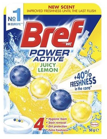 Szeretne egyszerűbb megoldást találni, mely minden öblítés során tisztán és frissen tartja WC-jét?Az egyedi Bref Power Aktiv négyfunkciós technológiával meggátolja a vízkőlerakódást, tisztítóhabot képez, higiénikusan tisztít és extra frissességet biztosít WC-jében. Most továbbfejlesztett frissességgel, mely akár az utolsó öblítésig is kitart. Európai belső tesz