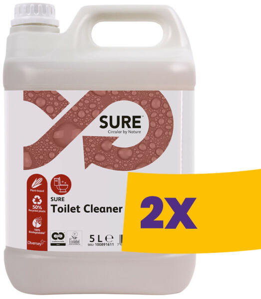 Toalett tisztítószer, növényi alapú, 100%-osan lebomló A SURE Toilet Cleaner az egyedi SURE termékkör tagja, mely 100%-osan lebomló*, növényi alapú összetétellel rendelkező professzionális tisztítószereket kínál minden napi tisztítási feladat elvégzésére. A SURE Toilet Cleaner egy használatra kész toalett tisztítószer, mely hatékonyan eltávolítja a vízkő- és egy