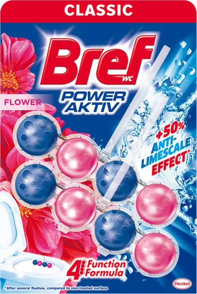 A Bref Power Aktiv Flowers nemcsak tisztán tartja a toalettet minden öblítéssel, hanem 24 órás frisseséget és szennyeződések elleni védelmet is biztosít az öblítések között a hét minden napján. Az újrahasznosításhoz válassza külön a kartont a műanyagtól.
