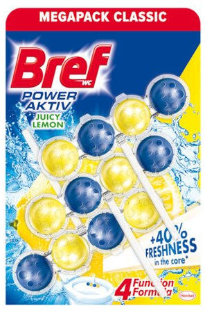 Termékleírás Termék információk A Bref Power Aktiv Lemon nemcsak tisztán tartja a toalettet minden öblítéssel, hanem 24 órás frisseséget és szennyeződések elleni védelmet is biztosít az öblítések között a hét minden napján. 4 funkciós formula: 1) Tisztító Hab 2) Vízkő elleni hatás 3) Szennyeződés elleni védelem 4) Extra frissesség Újrahasznosításhoz kérjük v