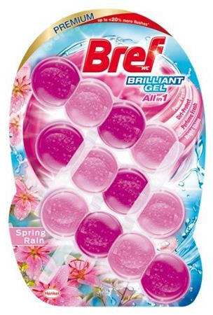 Innováció a Breftől! Az új Bref Brilliant Gél a WC frissítők új generációja. Az első gél állagú WC blokk a Brefre jellemző 4 labdás megjelenéssel. Gél állagának köszönhetően gyorsan oldódik és frissességgel árasztja el a toalettet. Akár +20%-kal több öblítés a Bref Power Aktiv-hoz viszonyítva (WC típustól függően). Prémium megjelenés és hosszan tartó, friss