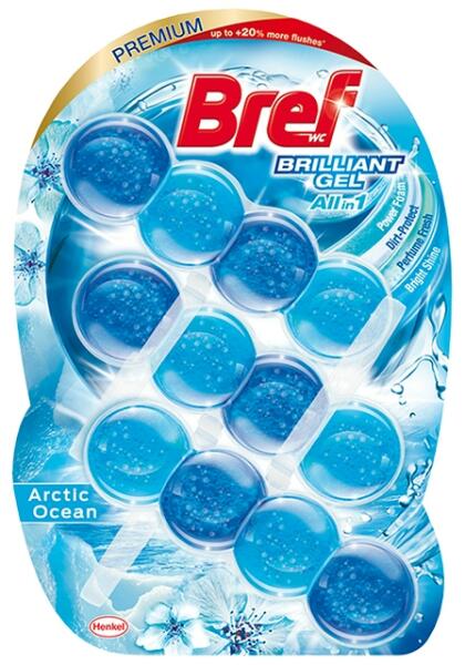 WC frissítőGél állagóRagyogó tisztaságHosszan tartó friss illatA Bref Brilliant Gél az első gél állagú WC blokk 4 labdás megjelenéssel. Gél állagának köszönhetően gyorsan oldódik és frissességgel árasztja el a toalettet. Ragyogó tisztaságot és hosszan tartó, friss illatot hagy maga után. A termék műanyag csomagolása 80% -ban újrahasznosított műanyagból készül