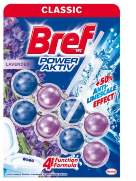 WC illatosító 2 x 50 g golyós Power Aktiv Bref Lavender Field Az új Bref Power Aktiv a hosszantartó illat mellett vízkõ ellen továbbfejlesztett formulát tartalmaz egy tisztább és ragyogóbb toalettért. 4 funkciós formula: Tisztító Hab Vízkõ elleni hatás Szennyezõdés elleni védelem Extra frissesség Újrahasznosításhoz kérjük válassza külön a karton és műanyag tartót.