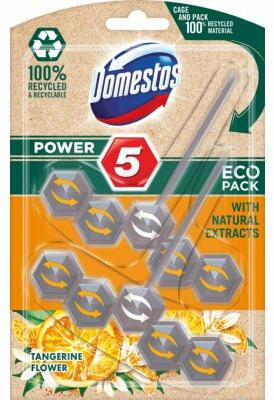 A Domestos Power 5 merev WC-blokk átfogó gondozást biztosít WC-jének. Megakadályozza a vízkőképződést, dús friss habot hoz létre, garantálja a WC csésze tiszta felületét, látható fényével, és nem utolsósorban higiénikus tisztaságot és hosszan tartó friss illatot hagy minden öblítésnél. Most az erősen koncentrált illatolajoknak köszönhetően még az öblítések k