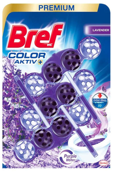 Bref PRÉMIUM WC frissítő 3X50g - Levendula (Color Aktiv) A Bref PRÉMIUM WC rúd 3X50g - Levendula (Color Aktiv)minden öblítéskor türkizkék színű tisztító folyadékot bocsájt ki, mely tisztíja a wc-jét. Illetve hatékony a vízszint alatt is, valamint frissességet biztosít az öblítések között is Diszkrét kialakításával és magával ragadó színeivel tökéletesen illeszk