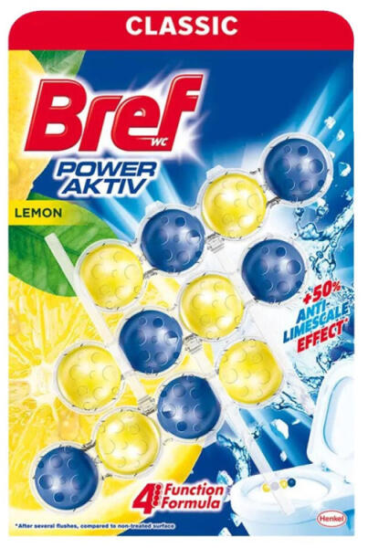 Bref Power Aktiv WC frissítő 3X50g - Citrom Egy egyszerűbb mégis hatékony módszert keres a WC frissen és tisztántartására? A Bref Power Aktiv Lemon, egy rendkívül egyszerű és kényelmes módszer, a toalett frissessége és tisztasága megőrzése érdekében az első öblítéstől az utolsóig A 4 Funkciós Formulájával ez a WC frissítő kitűnő választás az Ön fürdőszobáj