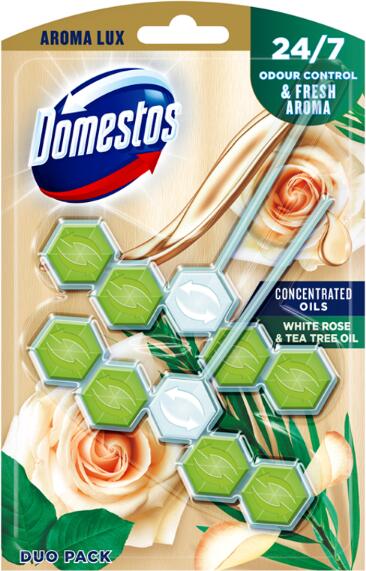 DOMESTOS Aroma Lux White Rose & Tea Tree Oil WC frissítő blokk 2 x 55 g
