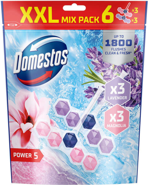 A Domestos Power5 WC frissítő blokkja segít megelőzni a koszt és a vízkőlerakódásokat a takarítások között is. Minden egyes öblítés után bőséges habot hagy maga után, amely segít megakadályozni a vízkőlerakódást, eltűntetni a koszt, és ragyogóvá tenni a WC kagylót, amely hosszan tartó kellemes illatot áraszt magából. -segít a vízkőlerakódás megelőzésében