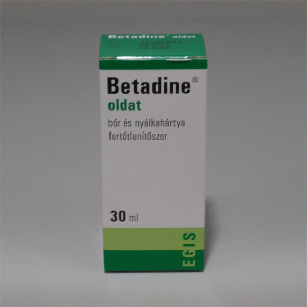 Betadine bőr- és nyálkahártya fertőtlenítő szer 30 ml Betadine oldat széles antibakteriális spektrummal rendelkező fertőtlenítő szer, mely bőr- és nyálkahártya-fertőtlenítésre alkalmas.