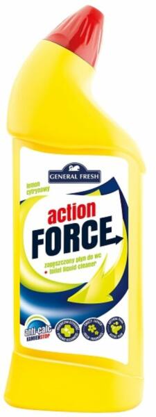 General fresh action gel force WC tisztító citrom illattal 1L Hivatalos magyarországi forgalmazótól. Leírás: A sűrített WC folyadék még több higiénia és frissesség a toalettben. A speciális konzisztencia és a gondosan elkészített recept révén a koszt és a vízkövet súrolás nélkül el lehet távolítani. A folyadék a nehezen megközelíthető helyeken is beválik, ahol a