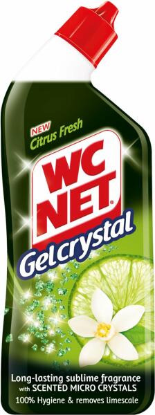 A WC NET Gel Crystal Citrus Fresh egy gyöngyházi mikrokristályokat tartalmazó gél, amely tökéletesen tapad a WC falához és biztosítja a hatékony tisztítást. Új összetételének és kellemes illatának köszönhetően feldobja a WC-t, és garantálja a maximális higiéniát és hosszantartó illatot. Használati útmutató WC NET Gel Crystal Blue Fresh WC gél: Nyomja meg a kupakot