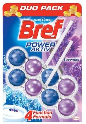 Az egyedi Bref Power Aktiv négyfunkciós technológiával meggátolja a vízkőlerakódást, tisztítóhabot képez, higiénikusan tisztít és extra frissességet biztosít WC-jében. Elkészítés és felhasználásAkassza a terméket a WC-kagyló peremére. Használatra kész termék. Összetevők>30% anionos felületaktív anyagok5-15% nemionos felületaktív anyagokIllatanyagok (coumarin,
