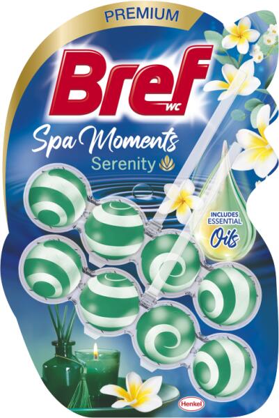 Az új Bref Spa Moments relaxáló, hosszan tartó illatélményt nyújt, és a WC-t személyes szentéllyé varázsolja, ahol elszakadhat a külvilágtól, és élvezheti az én-időt. Minden egyes öblítéssel egy kényeztető illat szabadul fel, ami egy hangulatos, jó közérzetet adó légkört eredményez, amelyet Ön élvezhet. Mindez a luxus illóolajokat tartalmazó egyedi formulájának