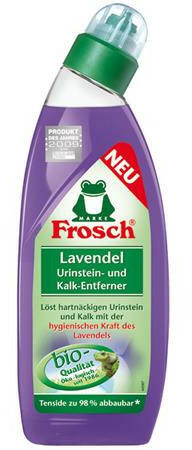 WC tisztítógél, 750 ml, FROSCH, levendula A Frosch levendulás WC tisztító gél természetes hatóanyagok segítségével, erőteljes vízkőoldó hatásával hatékonyan távolítja el a szennyeződéseket még a perem alatt is. Szűkített kiöntő-nyílással rendelkezik, így sokkal kevesebb folyadékkal is kitisztíthatja a WC-t. Környezetbarát, öko termék: Természetes alapanyagú t