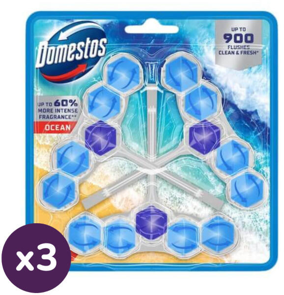 WC fertőtlenítő, 3 db-os, DOMESTOS "Power 5", lime A Domestos Power5 WC frissítő blokkja segít megelőzni a koszt és a vízkőlerakódásokat a takarítások között is. Minden egyes öblítés után bőséges habot hagy maga után, amely segít megakadályozni a vízkőlerakódást, eltűntetni a koszt, és ragyogóvá tenni a WC kagylót, amely hosszan tartó kellemes illatot áraszt mag