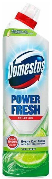 Domestos Power Fresh WC tisztító gél mindennapos használatra. Különleges formulája tisztítja és segít frissen tartani WC-jét. Próbálja ki a Domestos Power 5 WC-blokkokat is, hogy minden öblítésnél frissesség áradjon a WC-jében. Higiénikus tisztaság minden nap 100% frissesség Kellemes lime illat Figyelmeztetés: Veszély Figyelmeztető mondatok: H290 Fémekre korrozív hatás