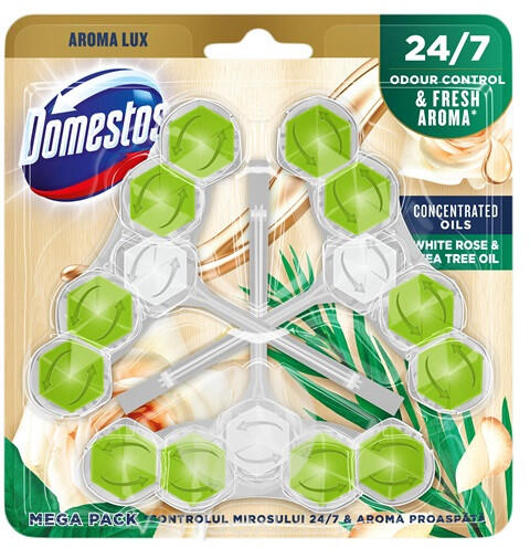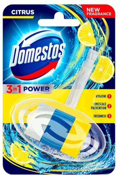 A Domestos 3 az 1-ben merev WC-blokkok három speciális rétegből állnak, és így három hatást egyesítenek. Megszüntetik a környezetet a baktériumok szaporodásához. Megakadályozza a vízkő kialakulását. Az illatosított gélcsík tartalmának köszönhetően minden öblítés után hosszan tartó friss illatot hagynak maguk után. Ezenkívül a Domestos tömör tömbök intenzíveb