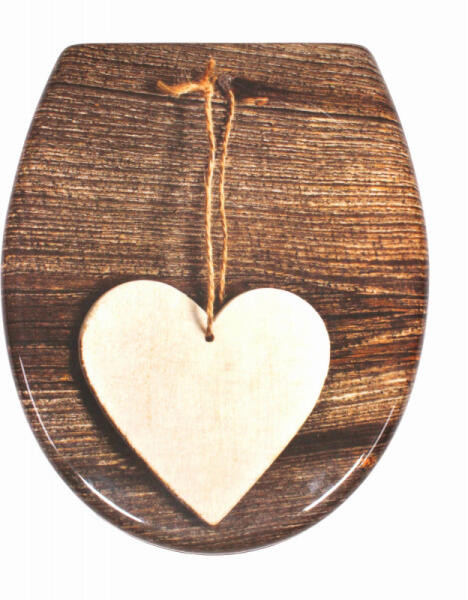A SCHÜTTE WOOD HEART WC ülőke legfontosabb jellemzői WC ülőke minden szabványos méretű WC csészéhez Duroplast WC ülőke WOOD HEARD, lágyan záródó mechanizmussal és gyors rögzítéssel A dupla soft-close mechanizmus gondoskodik arról, hogy a WC ülőke lassan és halkan csukódjon Levehető WC fedél praktikus gyorsrögzítő technológiával a kerámia gyors és higiénikus tisz