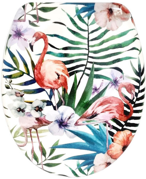 WC TETŐ DUROPLAST MŰANYAG FLAMINGÓS WC tető műanyag duroplast flamingós jellemzői: Wc tető ülőke flamingós mintával. Nagyon jó minőségű termék. Könnyen tisztítható, ellenáll vegyszereknek és a felülete antibakteriális. Erős fémzsanérok biztosítják a nehezebb súly terhelést. Könnyű fel és le szerelni a fajanszról a kampó zsanér véget, ezáltal könnyebb a szani