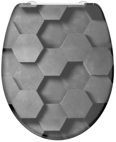 A SCHÜTTE GREY HEXAGONS WC ülőke legfontosabb jellemzői WC ülőke minden szabványos méretű WC csészéhez Duroplast WC ülőke GREY HEXAGONS, lágyan záródó mechanizmussal és gyorskioldással A dupla soft-close mechanizmus gondoskodik arról, hogy a WC ülőke lassan és halkan csukódjon Levehető WC fedél praktikus gyorsrögzítő technológiával a kerámiák gyors és higiénikus