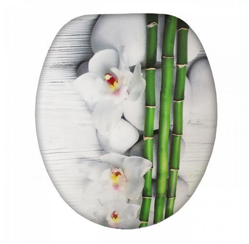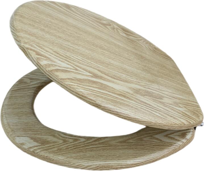 MDF WC ülőke mindhárom felületén mintás hozzávaló rögzítő elemekkel fém zsanérral hosszúság: 450 mm szélesség: 380 mm hagyományos WC-csészére szerelhető