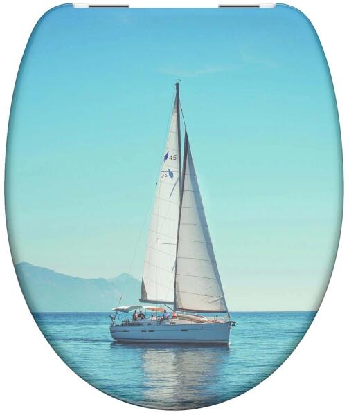 SAILING duroplaszt WC-ülőke. Ötletes formaterv egészen a legutolsó részletig. . Az az elképzelés, amely szerint a fürdőszoba kizárólag a napi higiéniát szolgálja, már rég a múlté. . Az olyan alapértékek, mint a sokszínűség és a termékek minősége, valamint az egyediség új távlatokat nyitnak... A termék jellemzői. . Egyedi: tetszetős SAILING nyomott minta. Kényelem