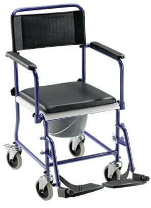 Ez a gördíthető szobai WC lehetővé teszi a beteg mozgatását és WC-re helyezését. A magas háttámla következtében a beteg kiválóan megtámasztható A kartámaszok lehajthatók Fékkel ellátott hátsó kerekekkel rendelkezik A lábtámaszok kihajthatók vagy az egyszerűbb szállítás érdekében le is vehetők. Könnyen szállítható, összecsukva kicsi a helyigénye Ülőke maga