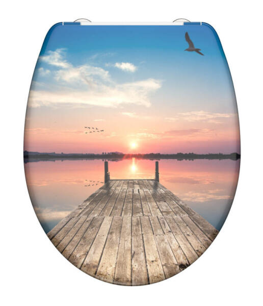 A SCHÜTTE SUNSET SKY WC ülőke legfontosabb jellemzői WC ülőke minden szabványos méretű WC csészéhez Duroplast WC ülőke SUNSET SKY, lágyan záródó mechanizmussal és gyorskioldással A dupla soft-close mechanizmus gondoskodik arról, hogy a WC ülőke lassan és halkan csukódjon Levehető WC fedél praktikus gyorsrögzítő technológiával a kerámiák gyors és higiénikus tiszt