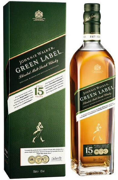 Gyártó: Johnnie Walker Modell: Green Label 15 Years 0,7 l 43% Leírás: Egy igazi felnőtt whiskyről beszélünk. Nagyon komoly illatok és ízek jellemzik ezt a blended maltot. Több lepárló és több hordónak a keveréke ez a termék. 100%-ban malátázott árpát tartalmaz, ebben nincsen gabona whisky. 1997-ben dobták először piacra, majd 2004-ben sikerült újra életet lehelni. A leg