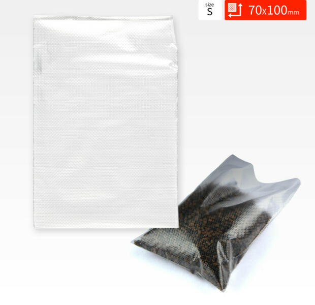 A simítózáras tasak, normál vastagságú, 7×10 cm méretben 40 mikronos vastagságú műanyagból készül. Átlátszó fólia, így a termék látszik a csomagolásban, emellett pedig védve is van a por, a szennyeződések, sérülések ellen. 100 darabos csomagolásban kapható. A lezárt rész feletti lyuk segítségével pedig a tasak állványra is akasztható. A simítózáras tasak, n