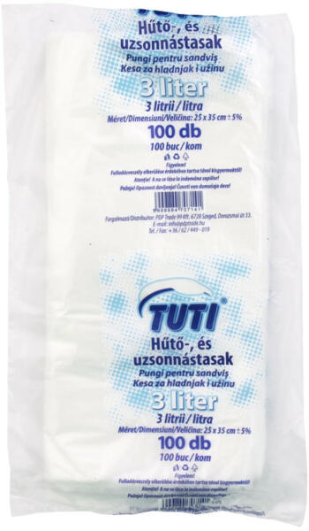 100db-os tasak élelmiszerek higiénikus csomagolásához, hűtéséhez. Egy csomag 100db átlátszó tasakot tartalmaz.