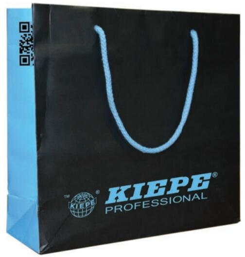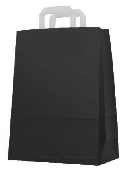 Fekete papír bevásárló táska, reklámszatyor szalagfüllel. A legkisebb választható mennyiség: 50 db, 250 db-os kiszerelés esetén kedvezőbb az ára.
