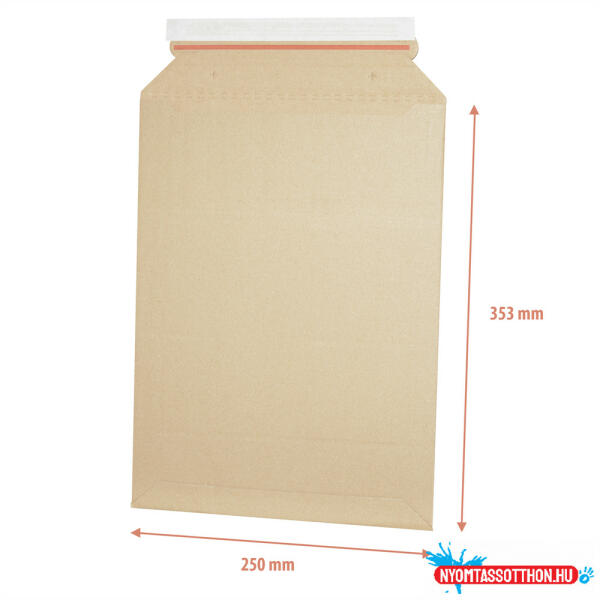 Hullámkarton tasak B4, 235x337mm/250x353mm E-Flute. Az ár egy darabra érvényes. Hullámkarton anyag az erős hajlítás védelem érdekében és a sérülésektől való védelemre, bővíthető formátum 50 mm-ig, dupla záródás, szilikonos zárócsík, felhasználóbarát nyitás, perforált ragasztócsíkkal, egyedi nyomtatás vagy dombornyomás lehetősége, hogy terméke egyedivé válj