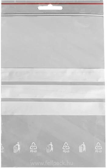 Átlátszó, műanyag tasak, mely simítózáras zárásmódal rendelkezik. Írható felülettel rendelkezik. 100 db/csomag kiszerelésben kapható!