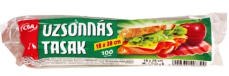 NYLON ZACSKÓ 18 X 28 CM 100 DB/CSOMAG UZSONNÁS CBA 4200roll/raklap Katalóguskód: 42522