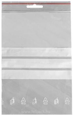 Átlátszó, műanyag tasak, mely simítózáras zárásmódal rendelkezik. Írható felülettel rendelkezik. 100 db/csomag kiszerelésben kapható!