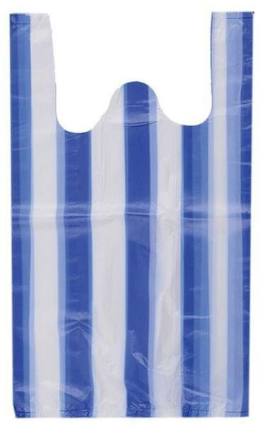 Ingvállas táska (reklámszatyor)Színe: kék-fehér csíkos Mérete: 28 x 50 cm Vastagsága: 13 mikron Kiszerelése: 500 db/cs (csomagol belül 100-as hajtással)Katalóguskód: 53918