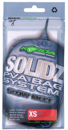 Korda Solidz Lassan Oldódó PVA Tasak XS Lassú olvadás, jellemzi távoli és mélyvízi horgászathoz ideális Erősebb, ideális nehéz ólmokhoz Oldódás teljes mértékben tiszta, maradékok és aromák nélkül Dobás során is stabil marad Kiváló minőségű anyagból A Korda Solidz Lassan Oldódó PVA Tasak egy prémium minőségű PVA tasak, amelyet a legkeményebb horgászatokhoz fej