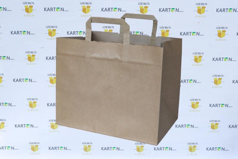 Szalagfüles papírtáska hajtogatott füllel, nyomatlanul. Praktikus, többször és különböző célokra használható. Olyan termékek szállítására alkalmas melyek nem nedvesek és nem túl nehezek. Kiszerelés: 250 db/karton Anyaga: 70 g/m2 barna nátronpapír A feltüntett ár tartalmazza a kiterjesztett gyártói felelősségi díjat.