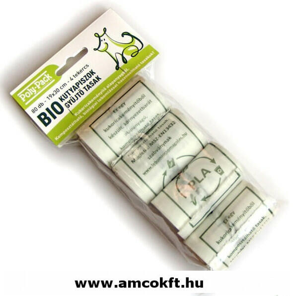 Környezetbarát, kukoricakeményítő alapú alapanyagból készült, komposztálható kutyapiszok gyűjtő tasak. kiszerelés: 4 tekercs/csomag 1 tekercs 20 db kutyapiszok gyűjtő tasakot tartalmaz megfelel az MSZ EN 13432:2000 szabványnak Megújuló forrásból származik, nem hagy ökológiai lábnyomot!